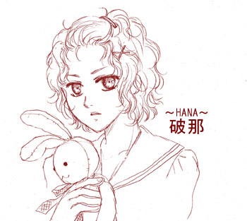線画が赤系なのは、破那の髪が赤い色だからです。
